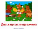 Мультфильм по мотивам венгерской народной сказки. Жили-были два медвежонка, которые постоянно ссорились. Надоело маме смотреть на их безконечные ссоры и она их наказала. А медвежата обиделись и пошли из дома счастья искать. Шли они шли и нашли большую головку сыра, но не знают как ее поровну поделить. Пока они думают, как бы не досталось другому больше, на их спор пришла лисичка и предложила свою помощь. И стала она делить: разломала на две части, но у одного вышло больше, а у другого меньше. Ничего сказала лиса и откусила от большего и он стал меньшим. А медвежата хотят поровну. Так хитрая лисичка делила, делила, пока и сама наелась и остались два маленькие кусочка, но равные.