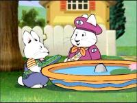 Max is still hungry after his lunch is all over him instead of in him, and Ruby decides to give him a bath, but unfortunately, he uses ice cream tubs and a grape juice glass as a boat, and that manages to get him dirtier than before, so Ruby gives him a shower. After his shower, he spies that Ruby's clothes have been stained.